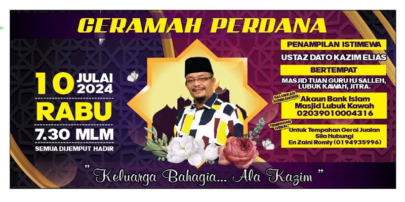 Ceramah Ustaz Kazim (Bank Islam 02039010004316) |