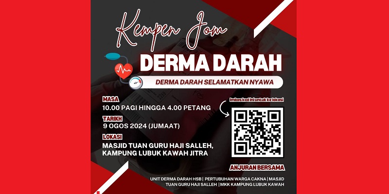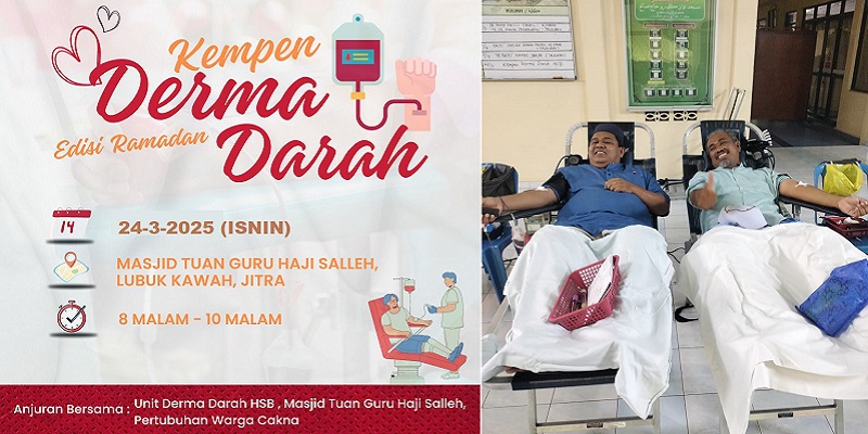 Kempen Derma Darah - Edisi Ramadan 2024 di MTGHS pada pukul 8 - 10 malam. |